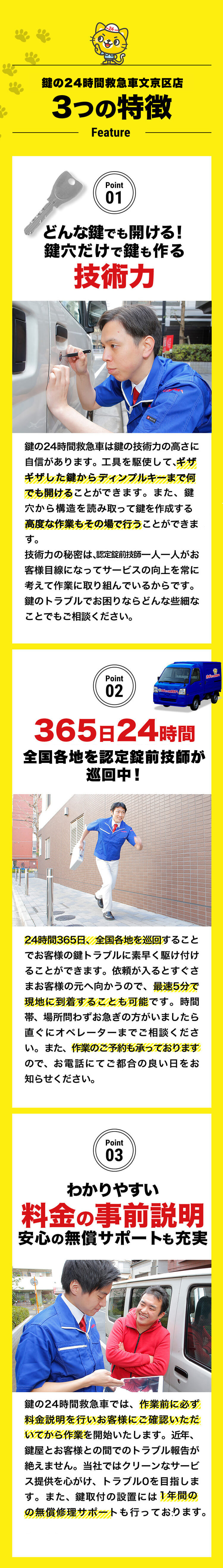 文京区の「カギの出張24時間」は本郷、小石川からのスピーディな対応をお約束。明確な事前説明と正確な見積もりで、お客様の信頼を第一に考えています。地域密着で親切丁寧なサービスを提供し、毎回の作業後にはお客様のフィードバックを活用しサービス品質の向上を図ります。